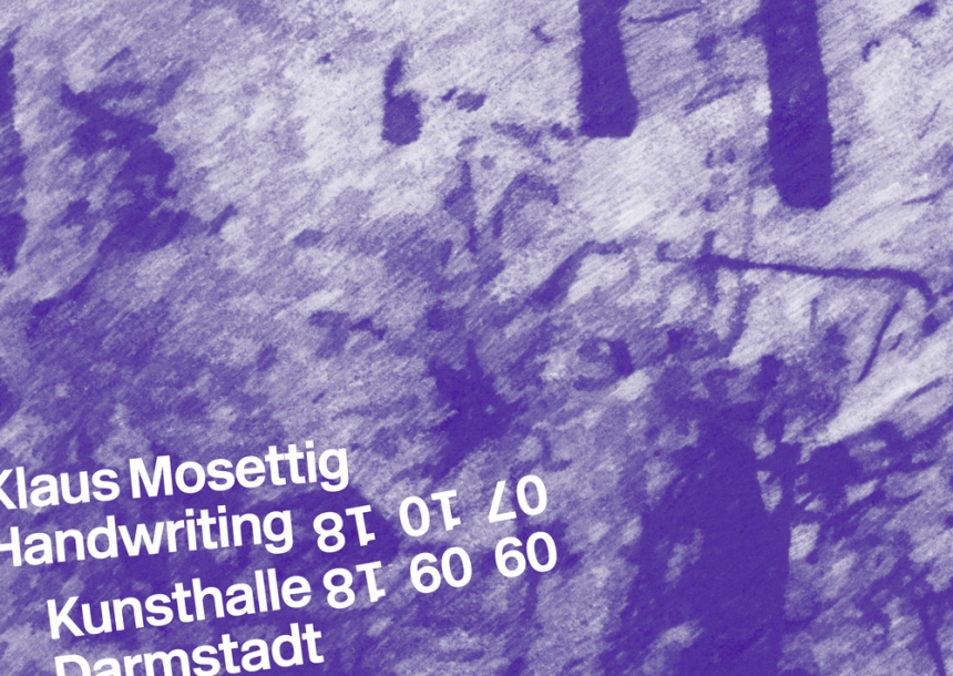 Erstmals zeigt die Kunsthalle Darmstadt im großen Saal die neuste Serie «Handwriting (Leros)» des Österreichers Klaus Mosettig (* 1975). Bekannt für meist großformatige Zeichnungen verschiedener Motive in der immer gleichen Schraffurtechnik, verwendet er für seine aktuelle Werkserie die Oberfläche eines Tisches als Vorlage. Dieser stand in einem griechischen Auffanglager für Geflüchtete. Hier nahm man Ankommenden ihre Fingerabdrücke ab.
